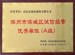 • ■2026-04-14 富利農植保榮獲“濱州市濱城區誠信經營優秀單位(A 級)