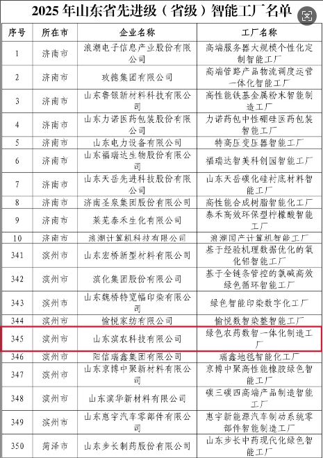 ■2025-07-15 濱農(nóng)科技獲評(píng)2025年山東省先進(jìn)級(jí)(省級(jí))智能工廠