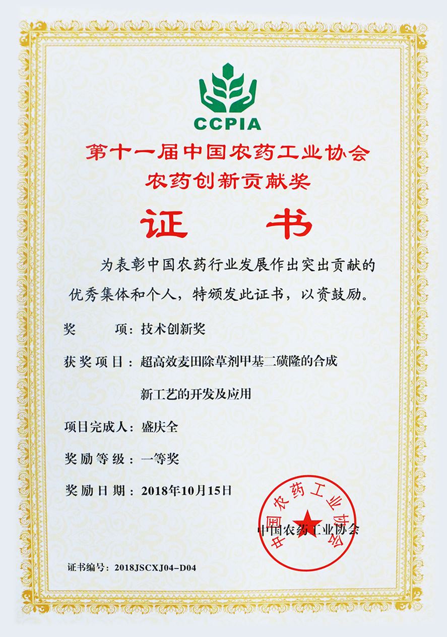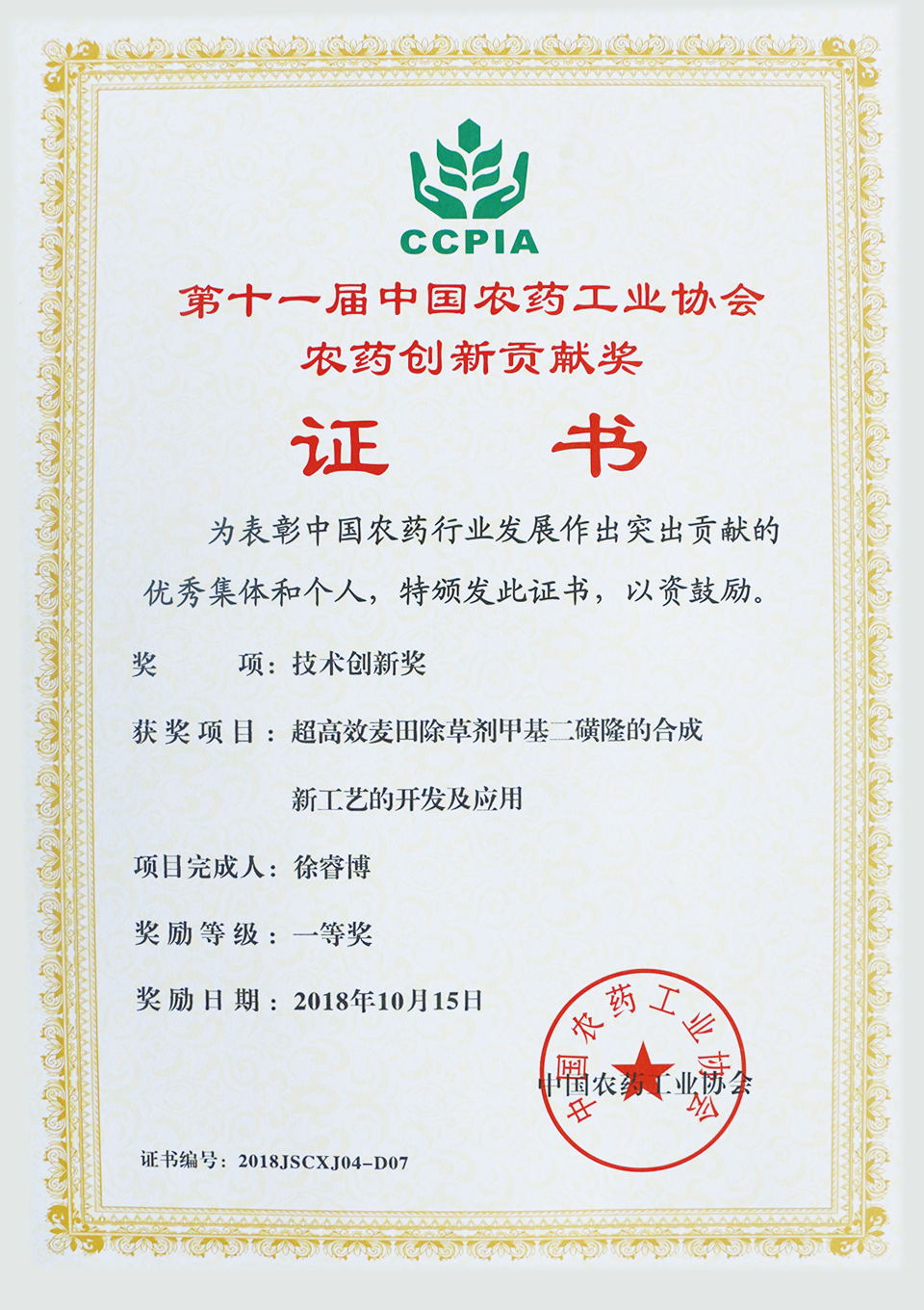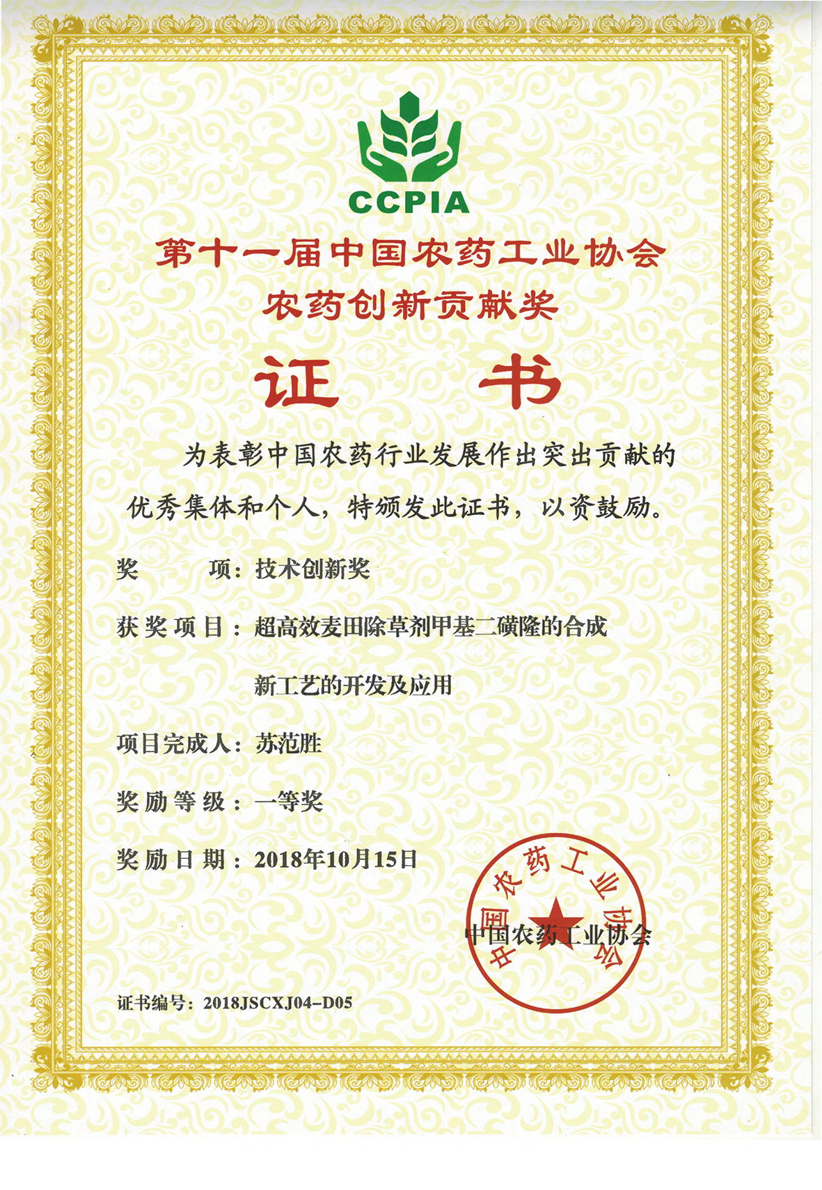 ■2021-04-08 我公司“25%苯醚甲環唑懸浮劑” 配方榮獲三等獎