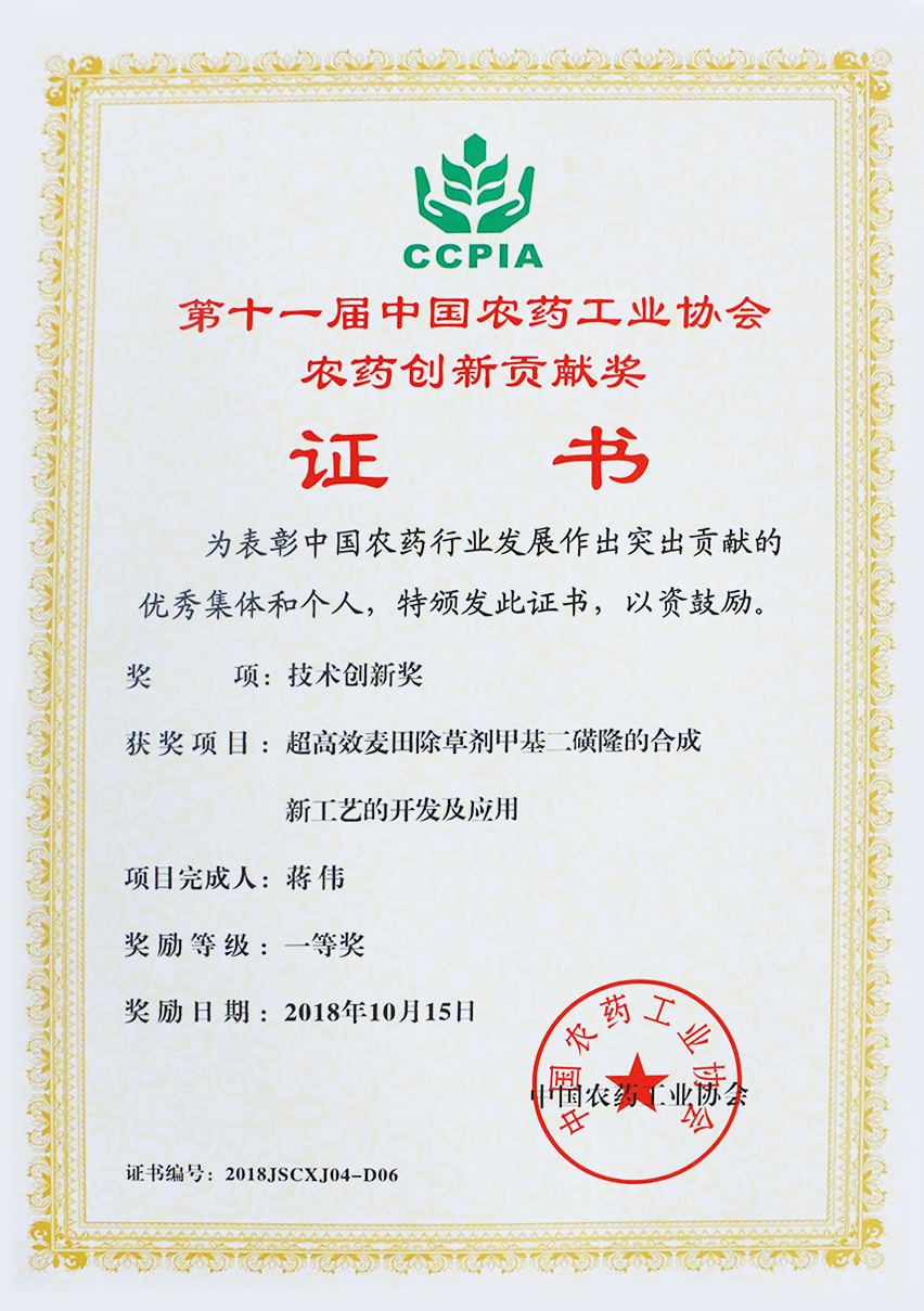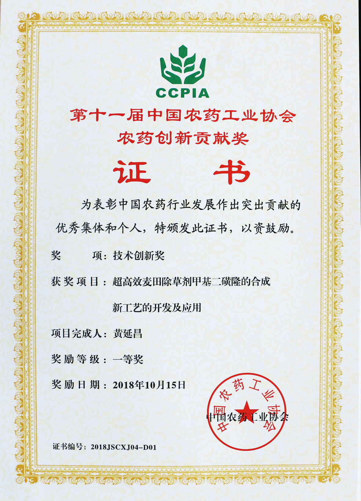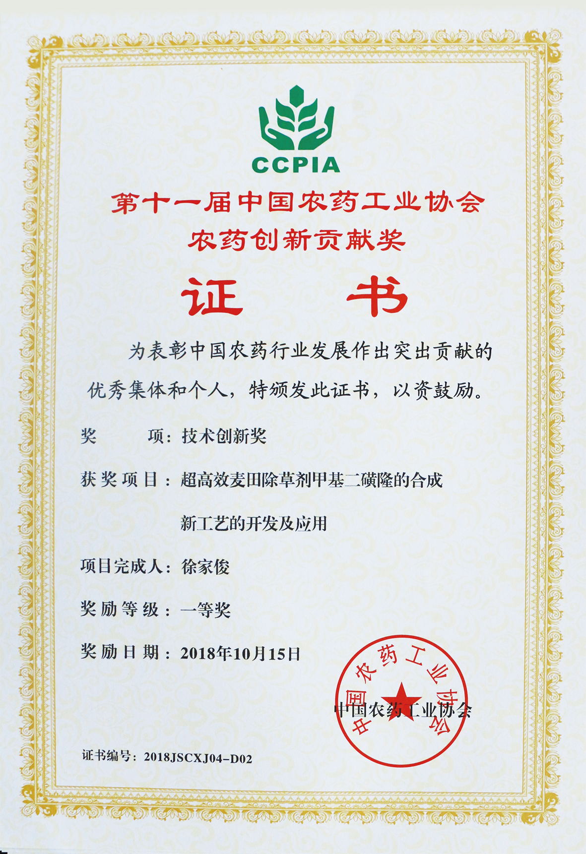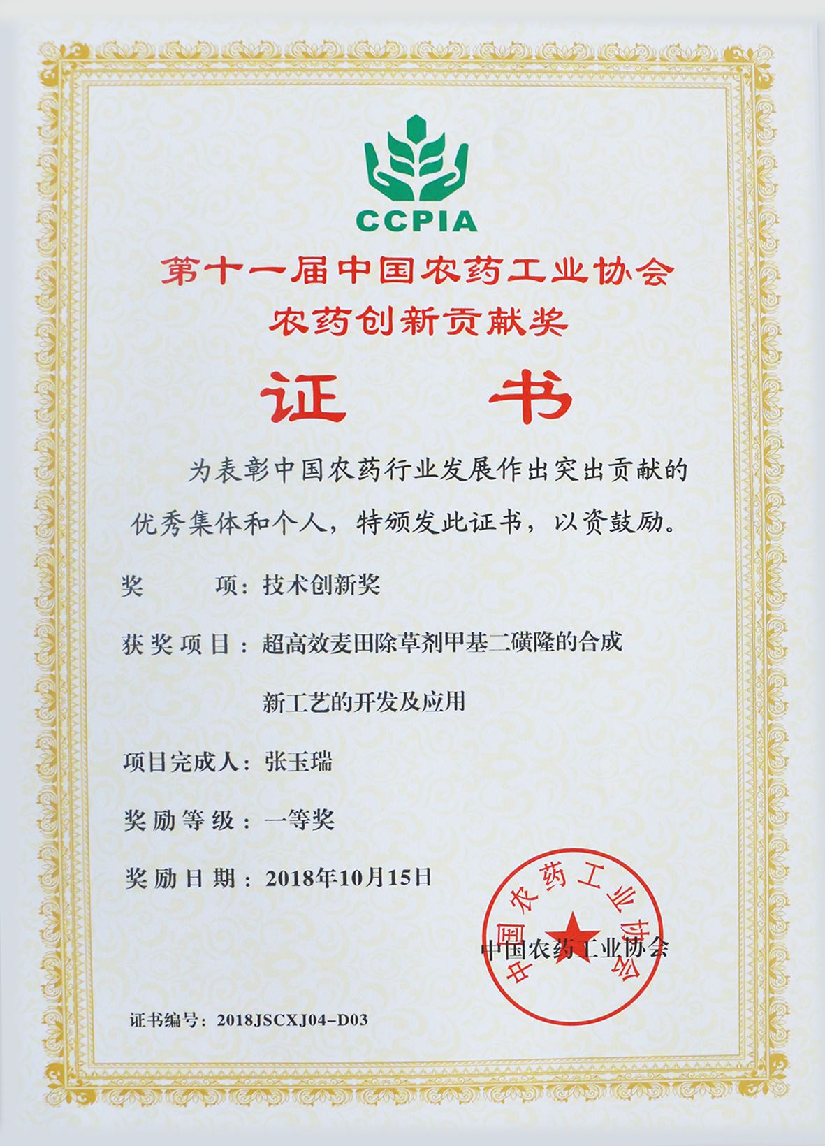 ■2021-04-08 我公司“25%苯醚甲環唑懸浮劑” 配方榮獲三等獎