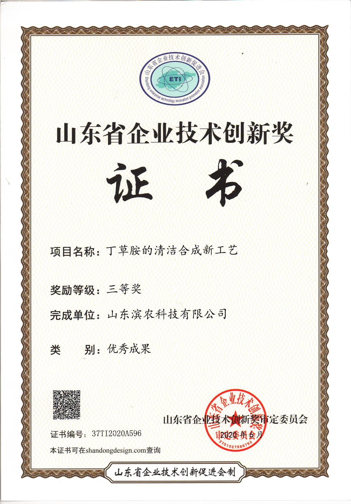 • ■2021-04-08 2020-08-05 我公司成果“丁草胺的清潔合成新工藝”榮獲山東省企業技術創新獎優