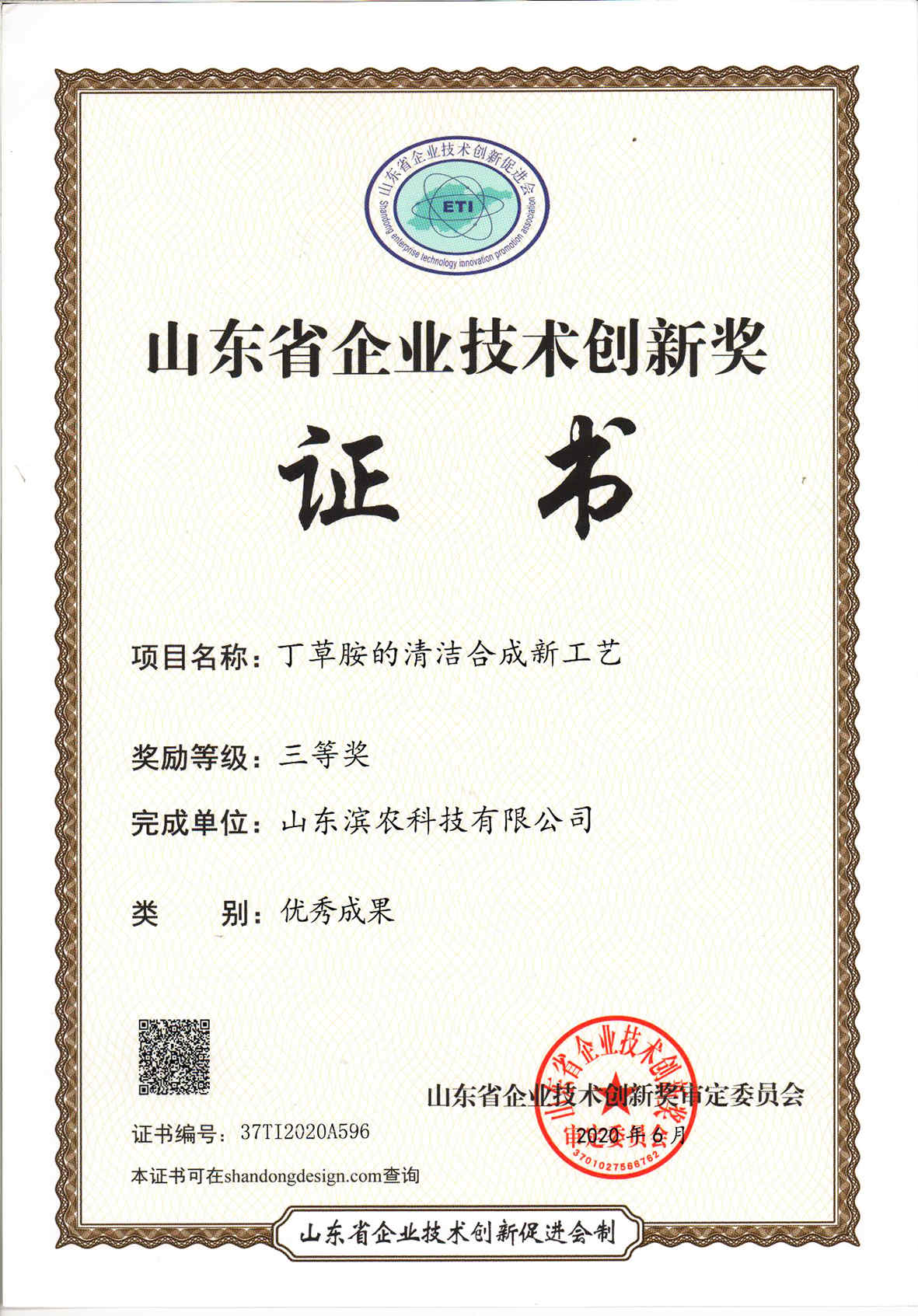 ■2020-08-05 我公司成果“丁草胺的清潔合成新工藝”榮獲山東省企業(yè)技術創(chuàng)新獎優(yōu)秀新產(chǎn)品