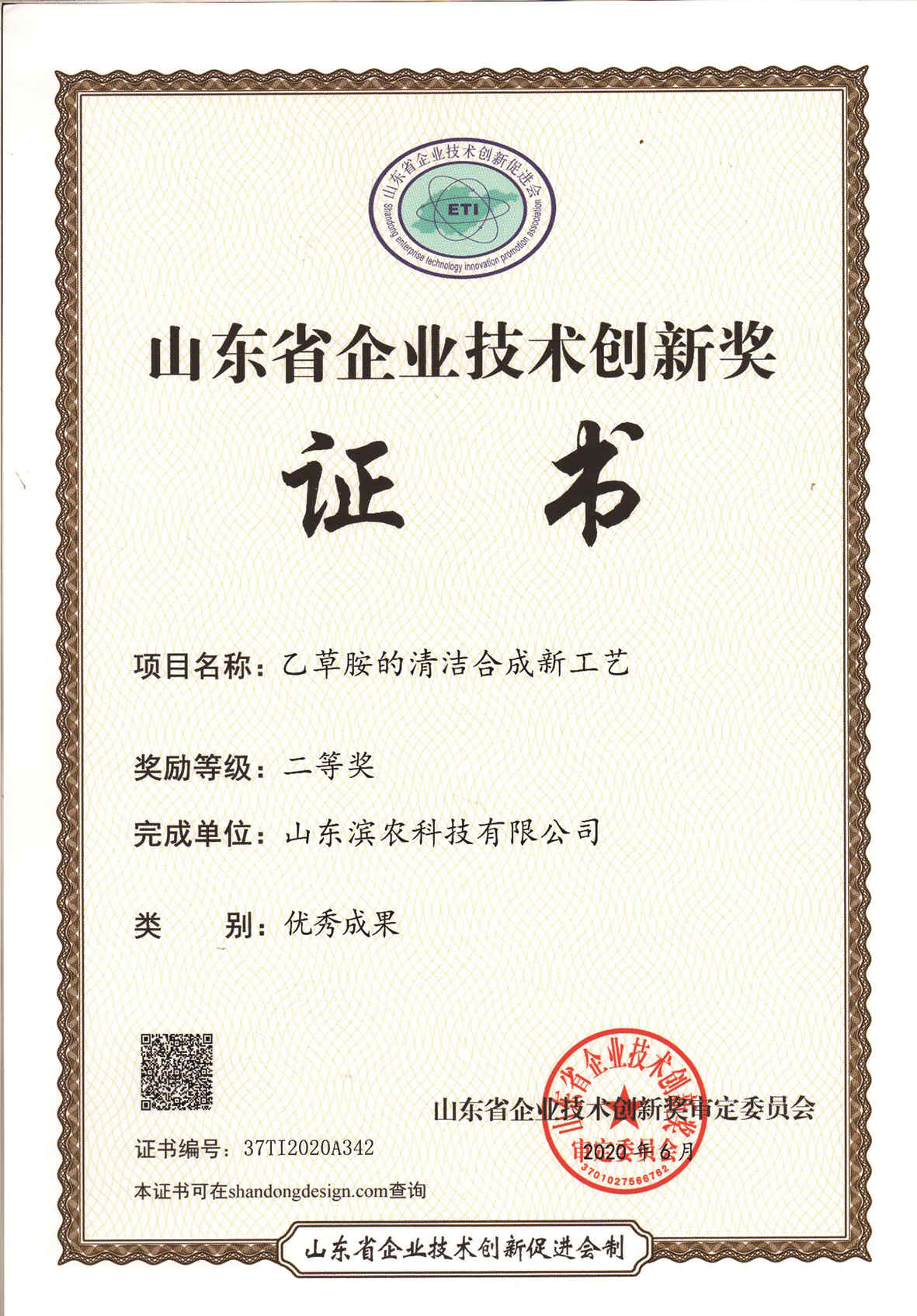 ■2020-08-05 我公司成果“乙草胺的清潔合成新工藝”榮獲山東省企業技術創新獎優秀新產品