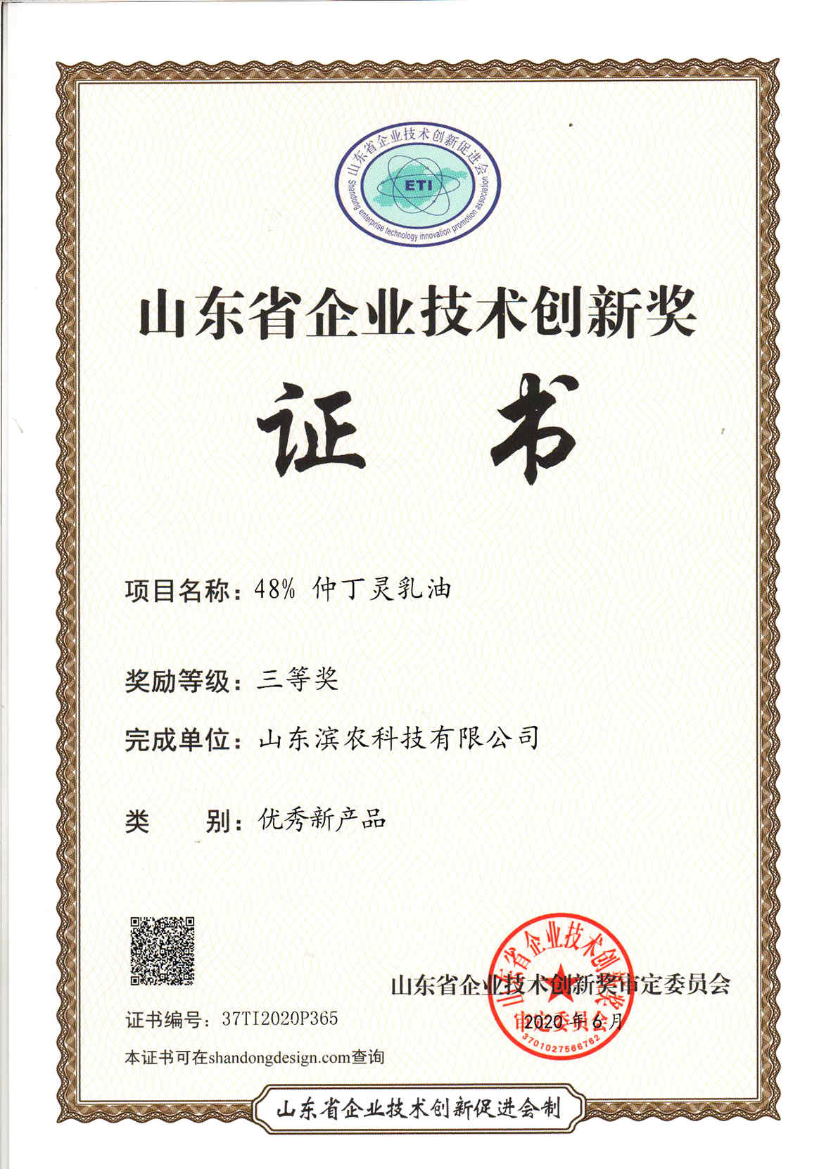 ■2020-08-05 我公司新產品48%仲丁靈乳油榮獲山東省企業技術創新獎優秀新產品三等獎