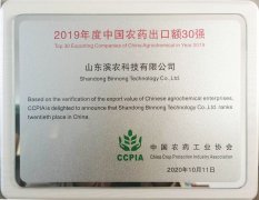 ■2020-10-12 我公司連續七年獲得“中國農藥出口額前30強”榮譽稱號