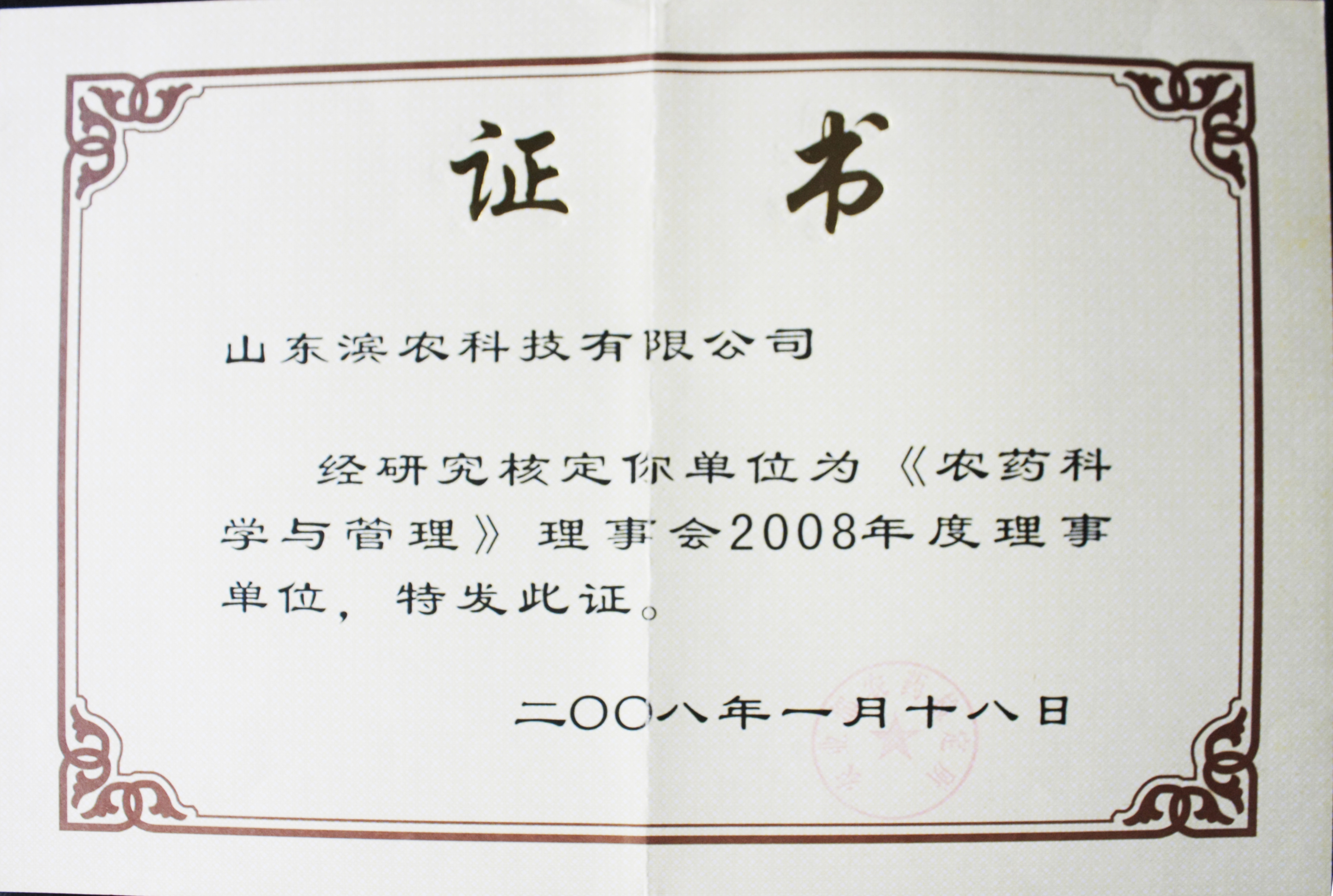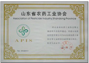 2008年2月,我公司經山東省農藥工業協會第五屆會員大會選舉通過,當選為山東省農業工業協會第五屆理事會副理事長單位。