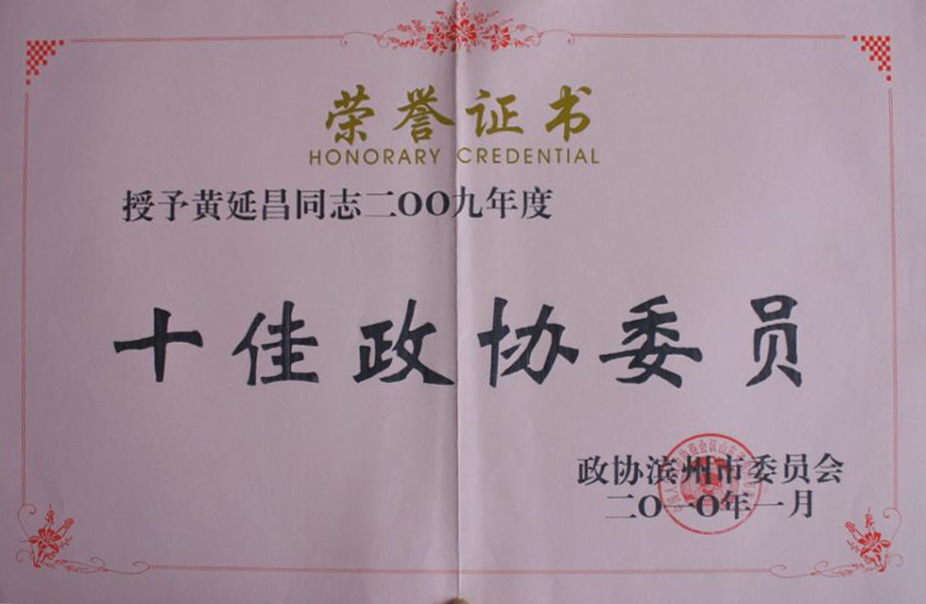 1 月 21 日上午,濱州市政協九屆三次會議舉行第二次全體會議。會上,我公司董事長黃延昌榮獲 2009 年度市政協 " 十佳政協委員 " 稱號,并獲得富民興濱勞動獎章。
