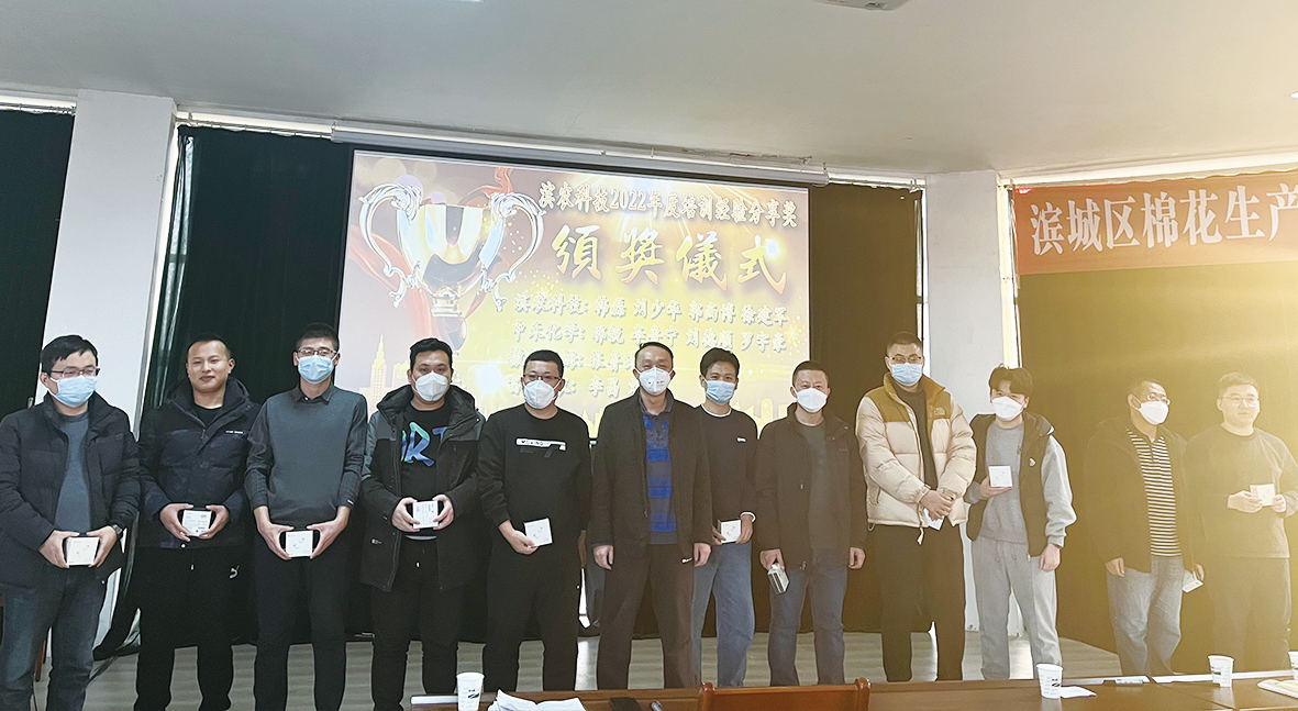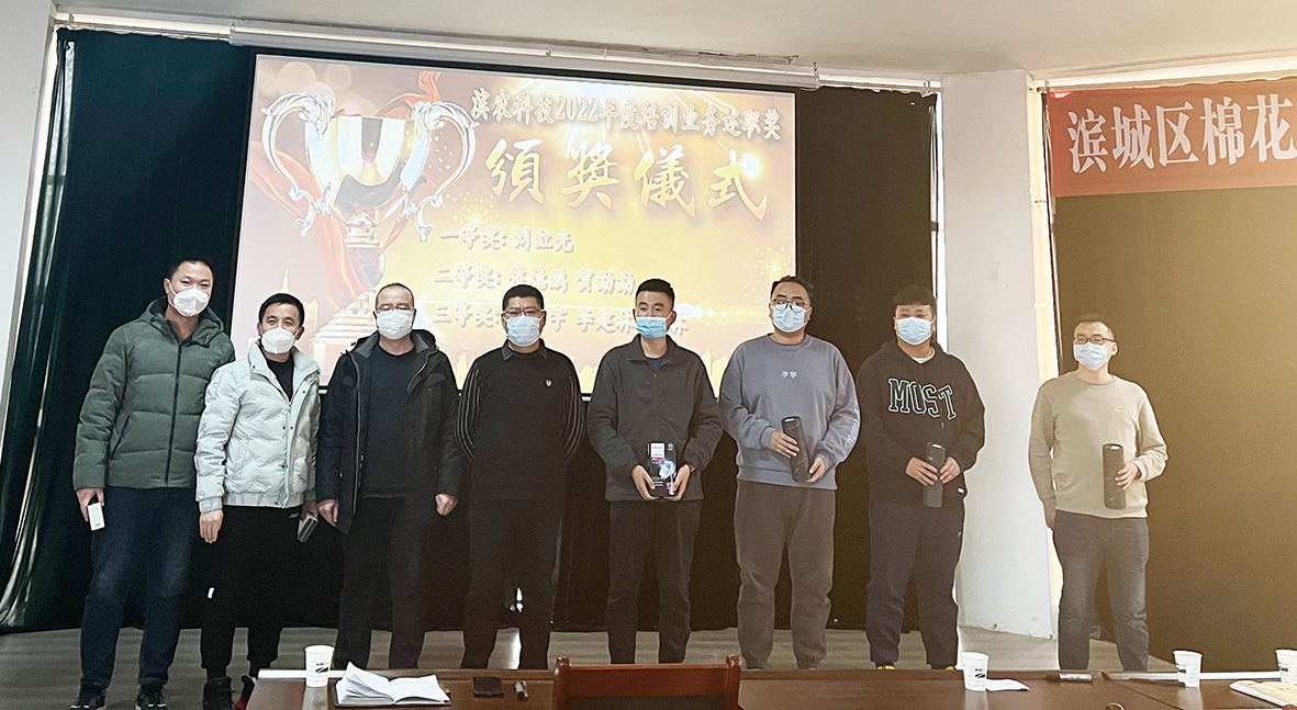 經(jīng)評(píng)選,最終濱農(nóng)科技韓磊、劉少華、郭尚博、徐建軍,中禾化學(xué)郭銳、李魯寧、劉德順、羅宇豪,撒播科姆張魯濤,富利農(nóng)李昌、劉浩11名員工榮獲“濱農(nóng)科技2022年度培訓(xùn)經(jīng)驗(yàn)分享獎(jiǎng)”;劉紅光、侯德鵬、賀勐勐、王津宇、李建林、程林等6名員工榮獲“濱農(nóng)科技2022年度培訓(xùn)業(yè)務(wù)述職獎(jiǎng)”,公司領(lǐng)導(dǎo)現(xiàn)場(chǎng)為他們頒發(fā)了藍(lán)牙無(wú)線耳機(jī)、溫顯保溫杯等獎(jiǎng)品。