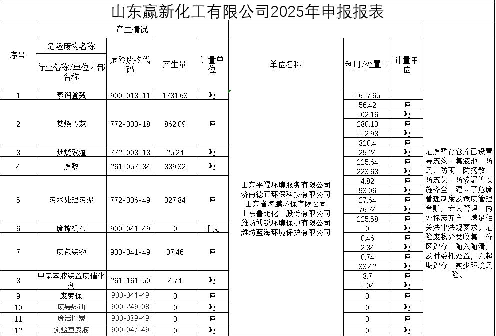 山東濱農科技有限公司2026年第1季度環境信息公示