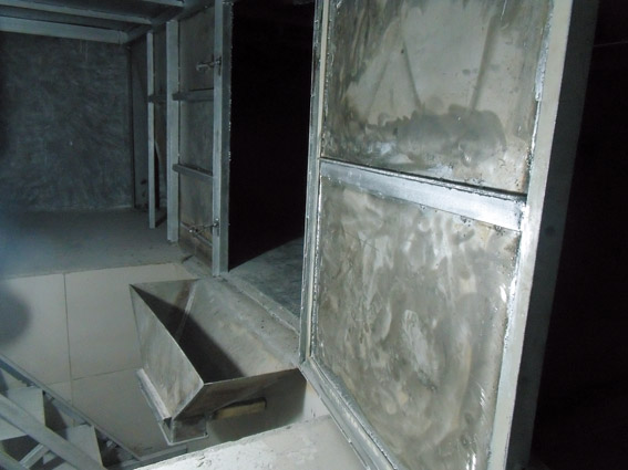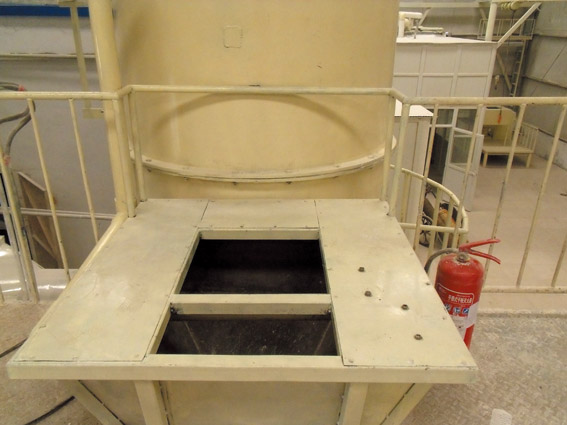 系統(tǒng)料的投料口和接料口是粉塵漂浮的兩個(gè)關(guān)鍵點(diǎn),如何吸收投料接料過程中產(chǎn)生的大量粉塵,引起了李主任的高度重視。他帶領(lǐng)車間員工,結(jié)合操作中的制約點(diǎn),自主動(dòng)手,焊制了一個(gè)特殊結(jié)構(gòu)的墩放設(shè)備。它可以使大包直接墩在上面投料,一側(cè)的觀察口還可以方便觀察投料接料的進(jìn)展情況,里面帶有小孔的管道 還可以直接吸收漂浮的粉塵,這個(gè)設(shè)備實(shí)現(xiàn)了全封閉狀態(tài)下完成投料接料生產(chǎn)。