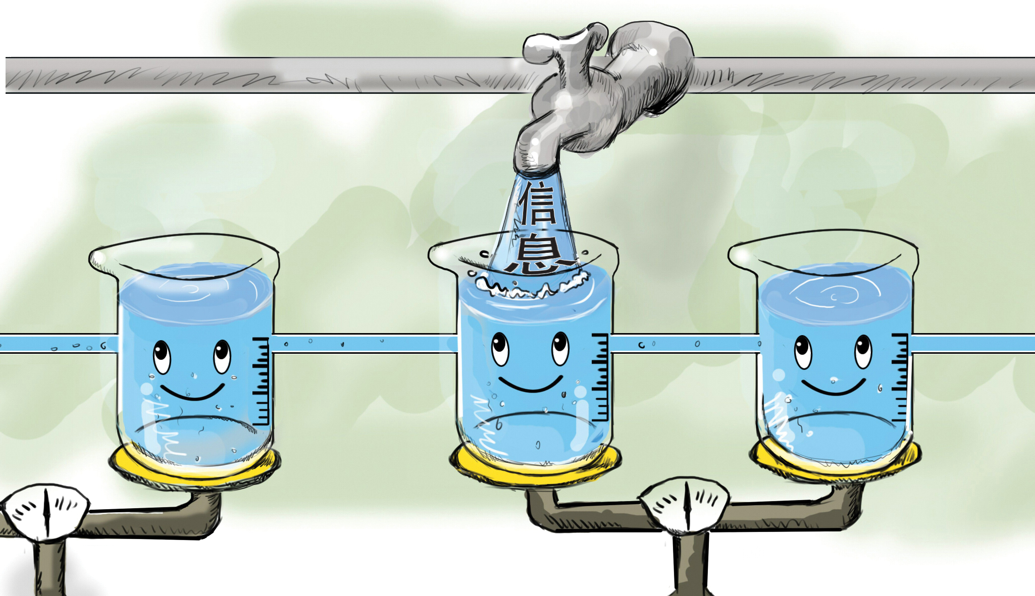 這個(gè)小圖示告訴我們:第一,要想有效連接和溝通,雙方都要做到開放、坦誠和互信。試想管子的兩端,如果只有一頭通暢而另一頭卻阻塞,那肯定只會(huì)溝而不通。第二,在這個(gè)連接、互通過程中,必須有一方要主動(dòng)一些,多付出一些。如果誰都不主動(dòng),雙方都處于等待狀態(tài),那么,這個(gè)本應(yīng)該暢通無阻的溝通過程就成了一種靜止的、閉塞的死水狀態(tài)。第三,要想保證互通的效果,就必須要做到及時(shí)。也就是說,整個(gè)連接、流動(dòng)的過程要快。試想一下,容器的水換成極易揮發(fā)的丙酮,如果連接不好,流動(dòng)不暢,過程出現(xiàn)紕漏,丙酮就會(huì)因揮發(fā)造成流失,容器內(nèi)水平面飛速下降,這就是溝通的內(nèi)耗和損失。
