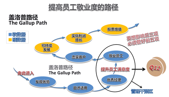 因此,對于管理者來說,以心酬提高員工敬業度責無旁貸。著名的“蓋洛普路徑”揭示了員工敬業度驅動企業業績提升的七步作用關系,而最關鍵的一步就是優秀主管能不能塑造出敬業的員工,并提供了提升員工滿意度的Q12測評法,不妨稱為“心酬十二法”,不妨成為管理者手中的常用工具,用以“攬鏡自照”,用以管理糾偏,用以驅動員工敬業度,用以提升企業績效。