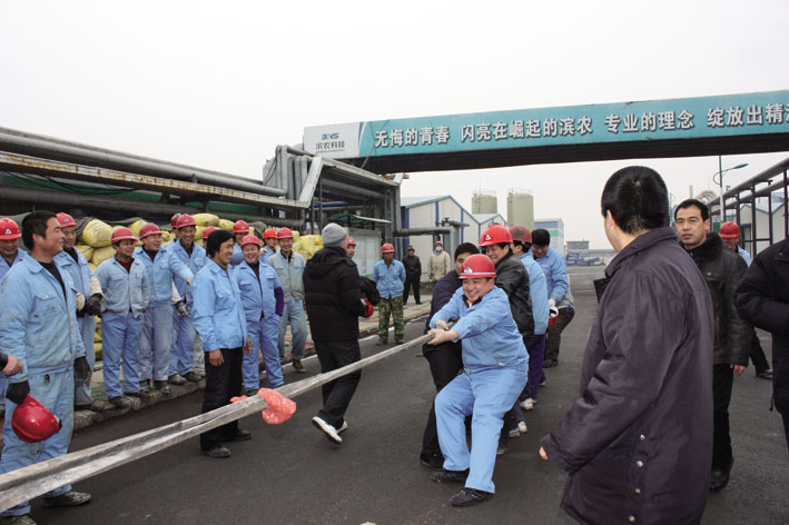 2010年 2月7日上午,二分廠懸浮劑車間舉辦了2010年第一屆車間趣味運(yùn)動會,二分廠廠長鄭軍做了賽前講話。比賽分為三個(gè)環(huán)節(jié):第一項(xiàng)拔河比賽,體現(xiàn)團(tuán)隊(duì)精神。第二項(xiàng)綁腿跑比賽,體現(xiàn)協(xié)作能力和技巧。第三項(xiàng)滾大桶比賽,考驗(yàn)賽手掌握技巧能力。比賽競爭激烈,各選手備戰(zhàn)十足。拔河比賽最終由牟俊龍、王朋會、呂清華、聶國俊、劉亞臣、孫大慶、孟祥輝、劉衛(wèi)東、付志樂、王汝江十名員工奪冠;綁腿跑比賽由趙洪泉、李樹泉;李偉松、崔連友;王汝江、薛呈濱三組員工榮獲前三;滾大桶比賽中,陳會永、宋建永、周洪星三人脫穎而出。