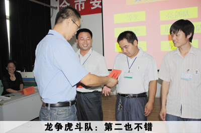 比賽設有必答題、搶答題、風險題三個環節,還為現場觀眾特設了觀眾題。副總經理陳延剛擔任總裁判。比賽內容涵蓋企業文化、安全環保、規章制度等各個方面,內容豐富,涵蓋面廣,重點突出,出題方式靈活多樣。各隊選手們準備充分,精神飽滿,競賽過程拼搶激烈,高潮迭起,觀眾互動搶答,精彩紛呈。經過三輪激烈的角逐,科室一組亮劍隊以270分的絕對優勢勇奪桂冠,一分廠龍爭虎斗隊和四分廠龍之隊分獲二、三名。陳總為各參賽隊現場頒獎,企業文化部主任戚哲芬為本次活動組織做了總結點評,并針對現場組織的諸多細節問題提出要求。