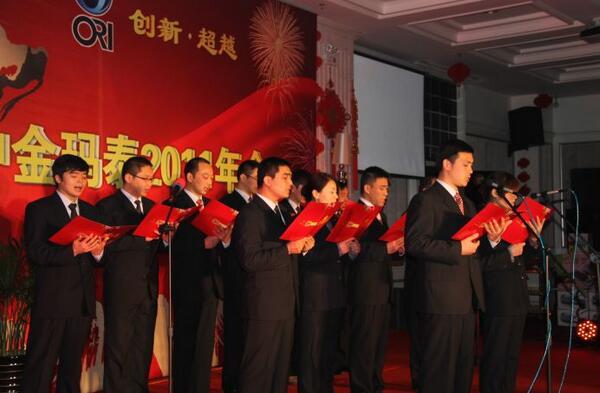 玉兔歡歌辭舊歲,祥龍起舞迎新年。2月4日,連云港世紀(jì)緣國(guó)際酒店七樓會(huì)議廳內(nèi)燈光璀璨,氣氛熱烈,洋溢著節(jié)日的喜慶和歡樂。以“創(chuàng)新、超越”為主題的中金瑪泰2011年年會(huì)正在這里隆重召開。來自公司各條戰(zhàn)線的三百余名員工歡聚一堂,共慶新春佳節(jié)。