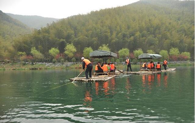 午餐吃過天目湖美味的砂鍋魚頭,下午我們到達(dá)的第二個景點是南山竹海。這是一個集資源利用、生態(tài)保護(hù)、旅游觀光于一體的世外桃源,素有“天堂南山、夢幻竹海”的美譽。一進(jìn)景區(qū),頓覺脫離都市的暄鬧,猶如走進(jìn)一個天然氧吧。景區(qū)內(nèi)青山秀美、竹海清幽。在湖水清洌的靜湖之上,一排排竹筏飄蕩在綢緞般的水面上,一行人終是沒能禁得住誘惑,紛紛跳上竹筏,揮舞櫓漿,悠賞水波蕩漾,水竹相依的美景。湖岸邊的碧綠竹海,散發(fā)著清涼靜雅的氣息,正所謂“舟行碧波上,人在畫中游”。 呼吸著清新的空氣,一行人繼續(xù)拾級而上,行至壽星廣場,中央佇立著的老壽星,慈眉善目,引人注目。雖然山坡陡峭,卻阻止不了大家意欲登高,極目遠(yuǎn)眺、縱覽群山小的急迫心情。心急的早已行至山頂,再坐索道纜車下行,連綿不絕的竹海,層層疊疊,像一幅巨型潑墨山水畫,秀美壯闊的景色,早已滌蕩去了身心的疲憊。