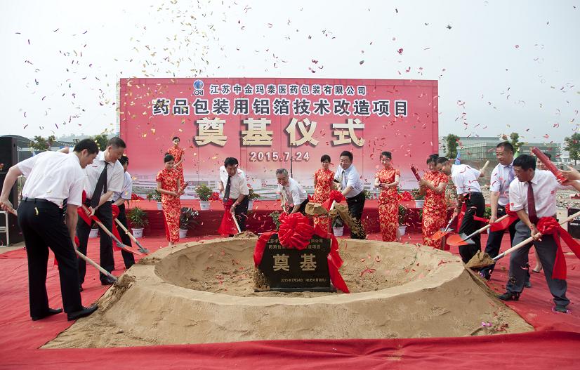 2015年7月24日,江蘇中金瑪泰醫藥包裝有限公司藥用包裝鋁箔技改項目奠基儀式在新廠區舉行,這標志著新工廠技改項目的建設正式拉開了帷幕。