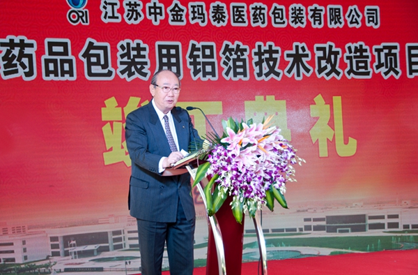 公司櫻井董事長首先作開場致辭,他代表中金瑪泰向蒞臨今天慶典活動的各位來賓表示熱烈的歡迎,向長期以來關心和支持中金瑪泰事業(yè)發(fā)展的各級領導、各界朋友、所有客戶以及設備、原材供應商表示衷心的感謝。向為項目建設付出辛勤勞動的各建設單位和全體工作人員表示親切的慰問。他說,中金瑪泰藥用包裝鋁箔技改項目自2015年7月開工建設以來,歷時10個月,克服了各種不利因素的影響,如期建成了一座國內(nèi)領先的環(huán)保、節(jié)能示范型工廠,新工廠引進國內(nèi)最先進的生產(chǎn)設備,確保為客戶提供安全、優(yōu)質(zhì)的產(chǎn)品,同時配以有機溶劑尾氣回收裝置,在提升企業(yè)經(jīng)濟效益的同時,進一步提升社會效益。致辭中櫻井董事長也指出,今年是公司成立27周年,自創(chuàng)業(yè)以來,中金瑪泰全體員工始終保持著要守護醫(yī)藥品安全的崇高使命,認真工作。他相信伴隨著新工廠的竣工投產(chǎn),中金瑪泰醫(yī)藥包裝事業(yè)必將進入一個新的發(fā)展階段。他也衷心地希望各級領導、各位嘉賓能夠繼續(xù)關注中金瑪泰的成長與發(fā)展,并一如既往的給予指導與支持。
