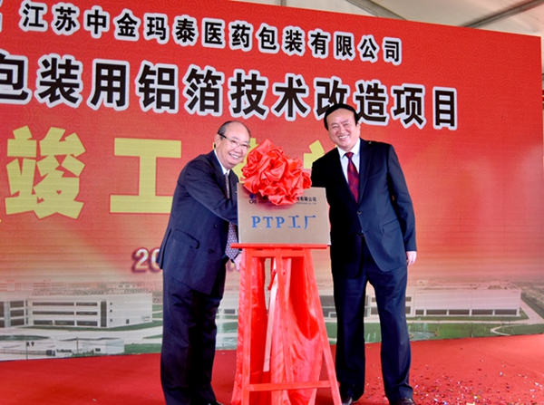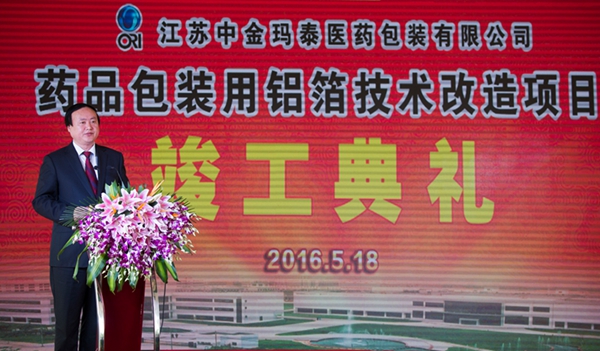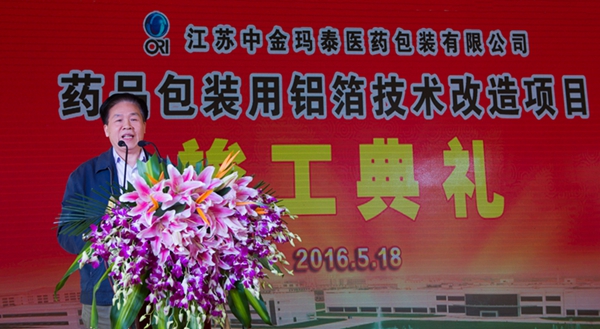 5月18日上午,江蘇中金瑪泰醫(yī)藥包裝有限公司廠區(qū)門前彩球高懸,鮮花族擁,洋溢著濃濃的喜慶氣氛,中金瑪泰藥用包裝鋁箔技改項目竣工慶典儀式正在這里隆重舉行。連云港市政府徐家保副市長、中國醫(yī)藥包裝協(xié)會馮國平副會長、聯(lián)合集團大坪 清社長、瑪泰集團藤田社長、威爾科技李永安董事長以及省、市、區(qū)相關部門領導、受邀嘉賓共100余人出席了竣工慶典儀式,共同見證這一歷史時刻。