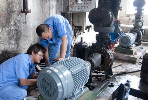 為響應國家節能減排號召,近日,設備部對公司冷凍機房的29臺電機進行了更新改造。經測算,更新后的YE3型電機節能高效,與老電機相比可節電10%以上,而且故障率極低。
