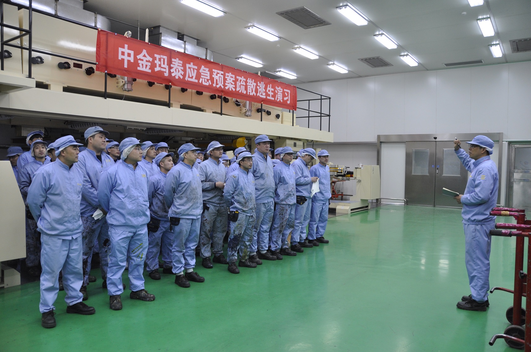 培訓(xùn)課程結(jié)束后,公司安全科長楊正濤在演練場地就滅火器材及防護(hù)裝備的使用進(jìn)行了現(xiàn)場的示范與講解,對初起火災(zāi)撲救方法以及火災(zāi)發(fā)生后如何報火警、如何安全疏散和自救逃生等安全常識進(jìn)行了詳細(xì)的解說,參訓(xùn)人員對手持式滅火器進(jìn)行了實(shí)際操作演練。在隨后的各工廠應(yīng)急演練疏散過程中,當(dāng)消防警報突然響起,各區(qū)域安全負(fù)責(zé)人立即組織本區(qū)域人員井然有序地按照規(guī)定疏散路線,迅速撤離現(xiàn)場,到達(dá)指定地點(diǎn)集合,出色的完成了疏散逃生演練。