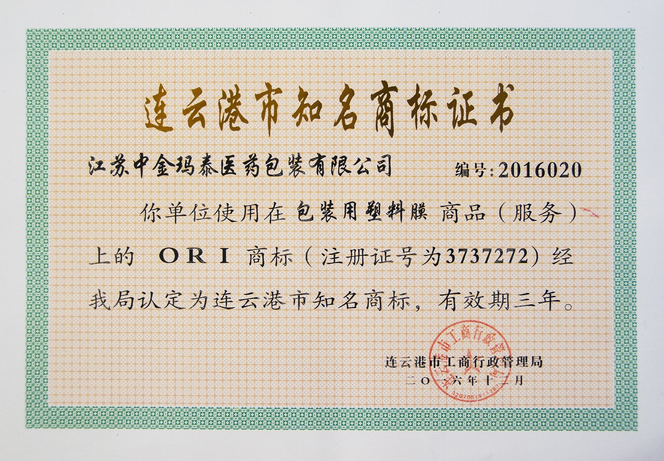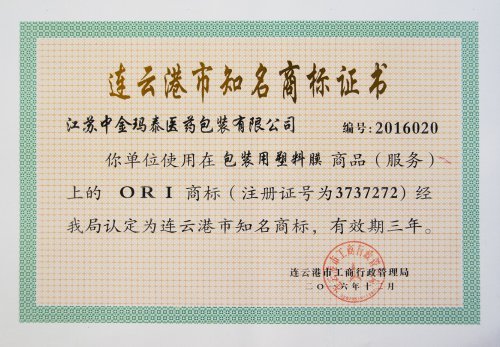 近日,從連云港市工商行政管理局傳來捷報,我公司注冊的ORI商標憑借品牌形象、市場占有率和營銷網絡等各項優勢,獲評為連云港市知名商標稱號并頒發證書,這也是公司品牌建設工程取得的又一新成績。
