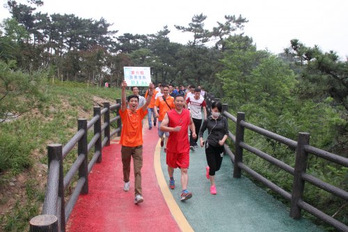 北固山風景秀麗、山色蔥郁,集林海、山石風光為一體,沿著5公里的仿木護欄一路前行,好似行走在詩情畫意中,伴隨著一路的草木清香和清涼涼的海風,讓人身心俱醉,回歸自然。5公里的路程走起來也需要很大的體力、耐力和毅力,終點清晰可見,而跨越終點才是勝利,領先的隊伍絲毫不敢放松,后面的隊伍隨時都會趕超上來,沖刺的決心使大家的腳步沒有絲毫懈怠。肆意揮灑的汗水,盡情釋放的能量,讓人盡享健康運動帶來的無比快樂。