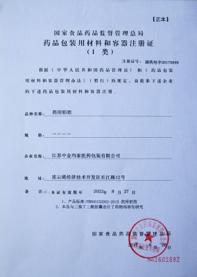 新工廠自2016年5月建成以來,順利通過了各項(xiàng)驗(yàn)收,同時我們對試生產(chǎn)的多批樣品進(jìn)行權(quán)威檢測,產(chǎn)品各項(xiàng)指標(biāo)均達(dá)到或超過國家標(biāo)準(zhǔn)《YBBO0152002-2015》。根據(jù)《中華人民共和國藥品管理法》和《直接接觸藥品包裝用材料和容器管理辦法》(暫行)的規(guī)定,我們于2016年6月對新工廠的藥用鋁箔品種向國家食品藥品監(jiān)督管理總局提出了生產(chǎn)注冊申請,2017年9月取得了該品種的注冊證書。