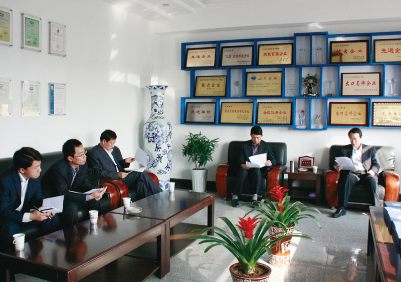 2010年11月5日,濱州市人才辦工作組人保局副局長董洪喜、市委組織部人才辦主任盧惠民等領導,在區委常委組織部部長李榮舜等領導的陪同下來我公司視察人才建設工作。公司副總經理李華熱情接待,就公司的人才經營理念及實踐經驗做了詳細交流匯報。工作組一行認真聽取了李總的匯報后,對我公司工人技師、后備干部等選拔培養辦法給予充分肯定和高度贊揚。