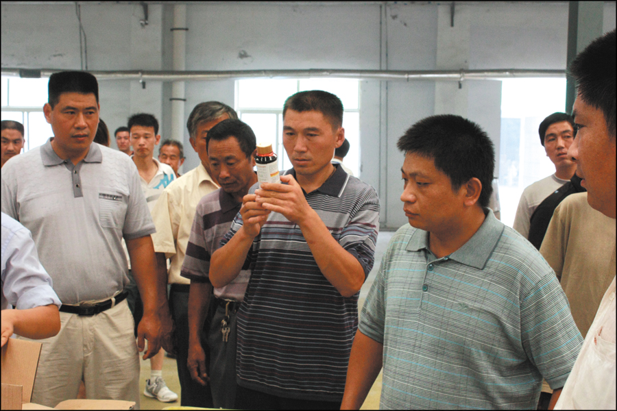 解說員張娜向客戶詳細(xì)介紹了制劑生產(chǎn)車間、成品倉庫和新建的生測(cè)溫室大棚。隨后,在四樓會(huì)議室,有關(guān)部門分別做了企業(yè)文化、大蒜田綜合除草技術(shù)和產(chǎn)品知識(shí)的專題講解。通過參觀考察,客戶親身感受到了我公司的生產(chǎn)理念、經(jīng)營理念、發(fā)展理念,對(duì)我公司的產(chǎn)品結(jié)構(gòu)和優(yōu)勢(shì)有了更深入的了解,大大增強(qiáng)了合作信心。
