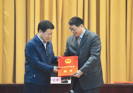 1月3日,在濱州市委、市政府隆重召開的全市科學技術獎勵大會上,我公司自主研發并實施的發明專利“一種含有異丙甲草胺和特丁凈的除草組合物”榮獲濱州市重大專利獎,市委書記、市人大常委會主任張光峰為公司董事長黃延昌頒獎。